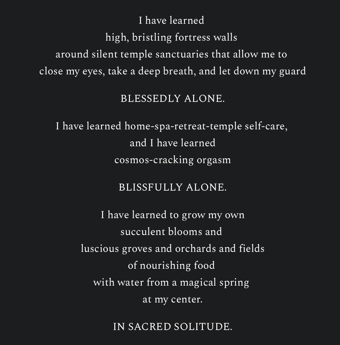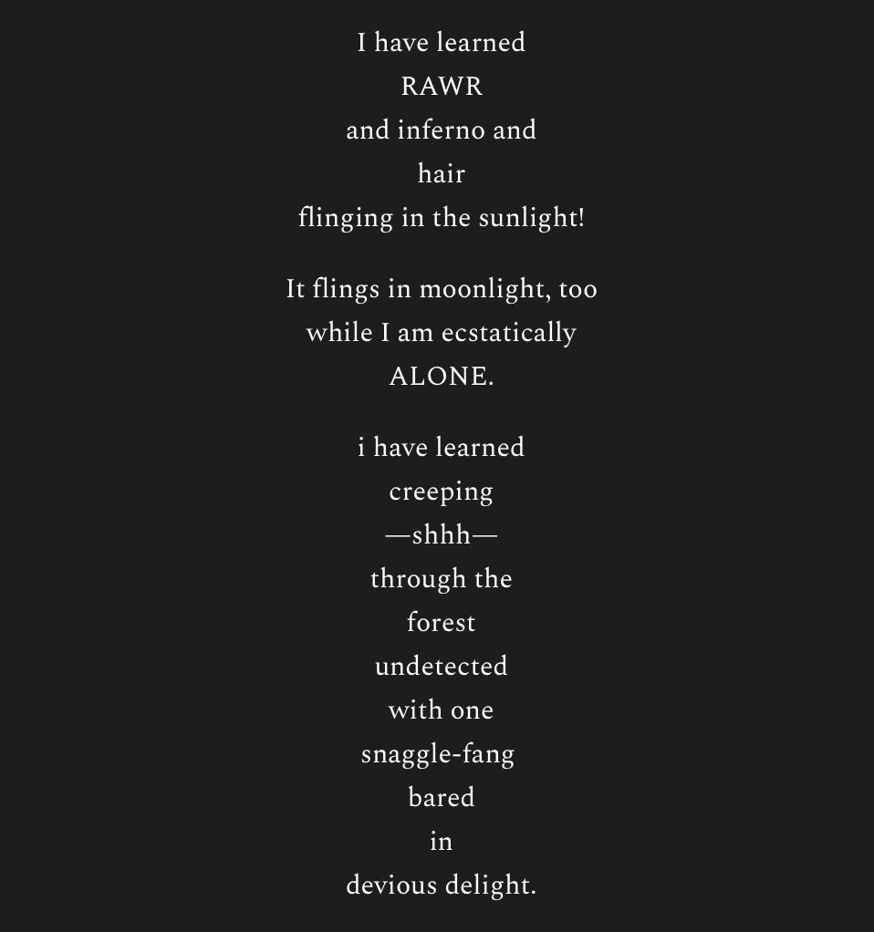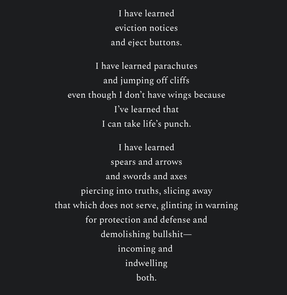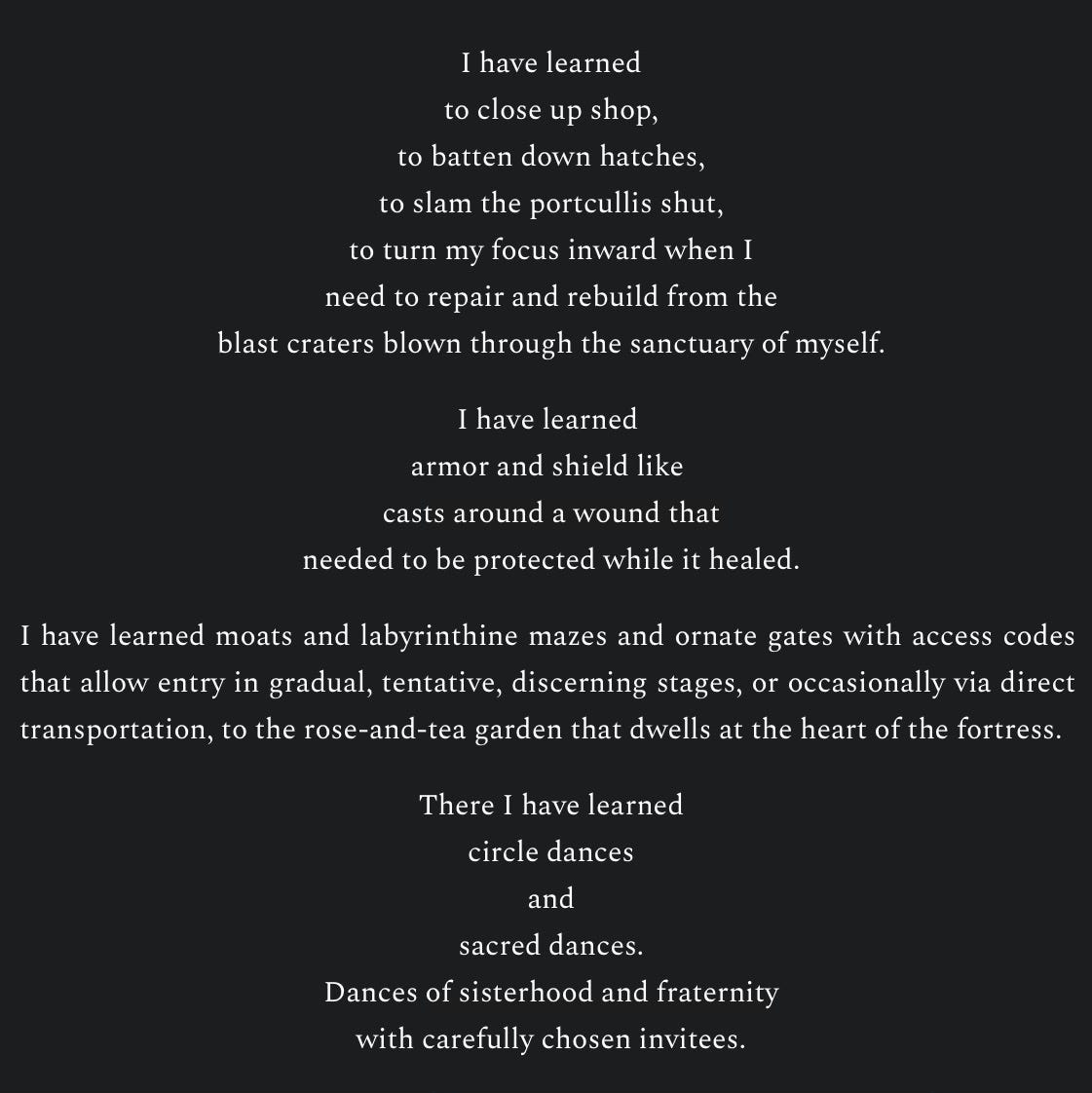 The writing that earned me a scholarship to a women’s retreat in Spain. Since this one is far less about rhythm & rhyme, and more about the placement of the words on the page, I’m going to give it to you in screenshots, so that even if you’re on your phone, it will hold its shape: